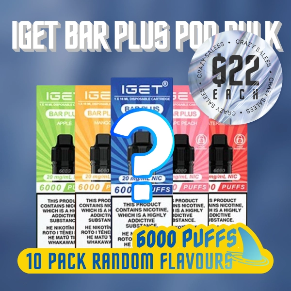 Elevate your vaping experience with an incredible bargain! The IGET Bar Plus Pod 10 Pack Random Flavours Promotion brings you a thrilling variety of delicious pods, randomly selected from our available stock, all at an unbeatable clearance price of just $22 each! This is your chance to enjoy a mix of premium IGET Bar Plus Pod flavours from a limited, clearance-stock range. Please Note: As this is heavily discounted clearance stock, all sales are final, and no refunds or returns will be accepted. Stock is extremely limited—once they are sold out, secure your 10-pack today and lock in this value with the Cheapest IGET Bar Plus Bundle!